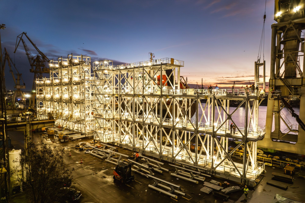 Kompleksowe wykonanie instalacji elektrycznych na wielkogabarytowej konstrukcji offshore wspierającej transport morski. Zakres prac obejmował wyposażenie konstrukcji w osprzęt elektryczny oraz dostawę i montaż rozdzielnic elektrycznych – dystrybucyjnych i sterowniczych.